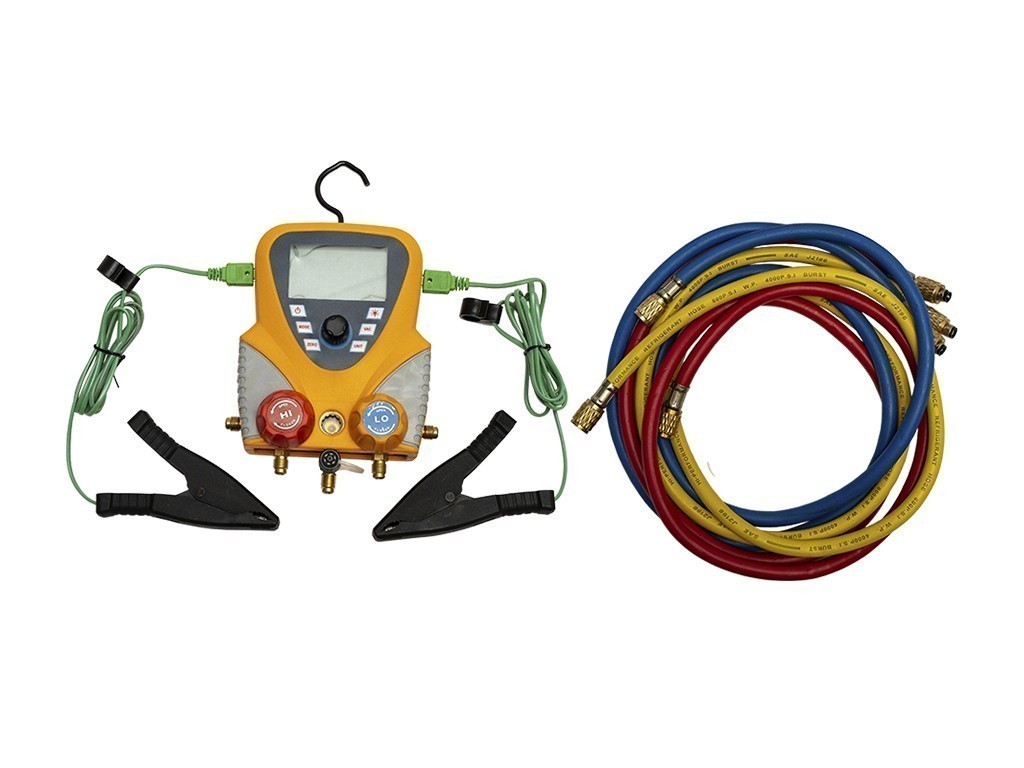 Цифровой манометрический коллектор VOLL V-MGC Digital. Производит одновременный расчет перегрева и переохлаждения. В памяти прибора свыше 60 хладагентов.