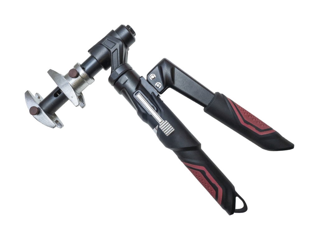 - малые габариты пресса и вращающиеся в двух плоскостях запрессовочные тиски позволяют производить монтаж в труднодоступных местах;