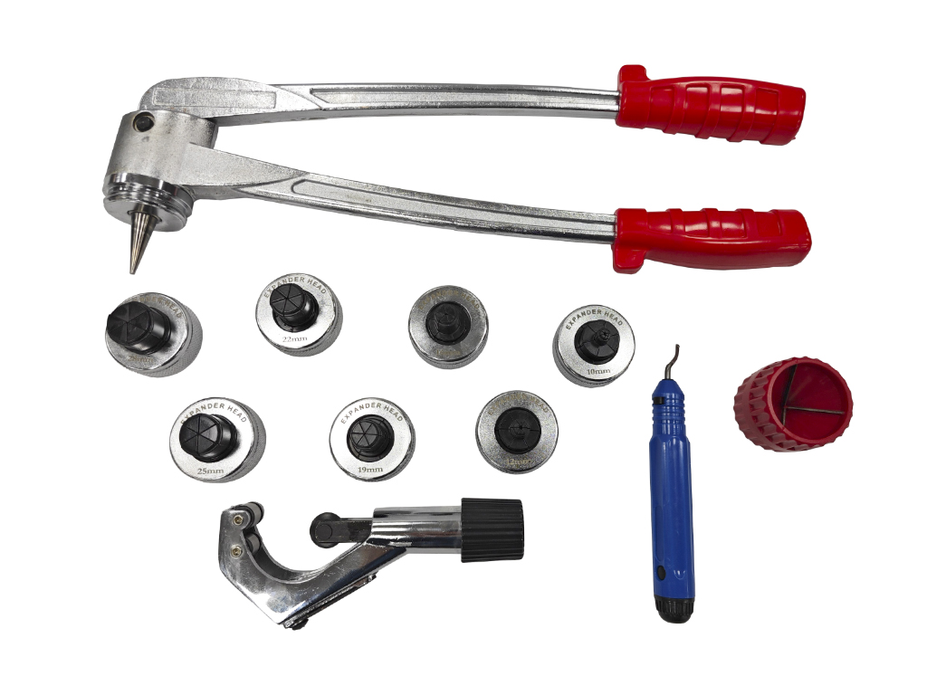 Ручной экспандер с набором расширительных головок VOLL для медных труб D 8/10 – 28 мм применяется для монтажа труб